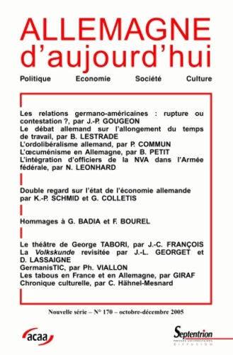 Allemagne d'aujourd'hui N° 170Convergences et divergences entre la France et l'Allemagne sur la perception et l'application des décisions de Bologne et de la Sorbonne ACAA10,70 €