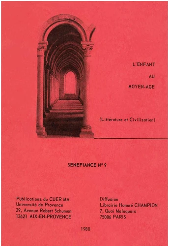 L'enfant n'est pas un personnage fréquent dans les ouvres médiévales : on l'a souvent souligné à juste titre. Il est pourtant présent dans quelques textes, et il apparaît à des âges divers, avec son charme et son ingénuité spécifiques, au détour d'un épisode ou même à un moment où sa venue contribue à relancer le récit. L'enfance n'est pas non plus absente des ouvres autobiographiques, même si le clerc qui se raconte projette sur ses premières années sa vision adulte de la vie et du monde.