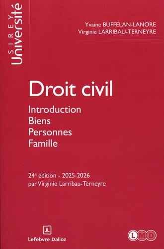 L'ensemble du programme de droit civil première Après une introduction générale à l'étude du droit , intégrant l'étude du patrimoine , des biens et des droits sur ces biens , les auteurs traitent successivement des personnes et de la famille , couvrant ainsi l'ensemble du programme de première année , quelles que soient les orientations prises par les facultés. Cette 24e édition tient compte de la jurisprudence la plus récente et des derniers apports de la doctrine contemporaine ; elle est également à jour des dernières réformes intéressant le droit des personnes et de la famille .