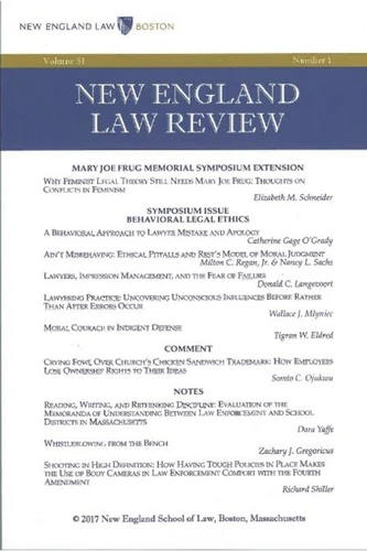 The New England Law Review offers its issues in convenient digital formats for e-reader devices, apps, pads, and phones. This first issue of Volume 51 (2017) features an extensive and important Symposium, "Behavioral Legal Ethics, " with contributions by Catherine Gage O'Grady, Milton C. Regan, Jr. & Nancy L. Sachs, Donald C. Langevoort, Tigran W. Eldred, and Wallace J. Mlyniec. The issue also includes an essay by Elizabeth M.