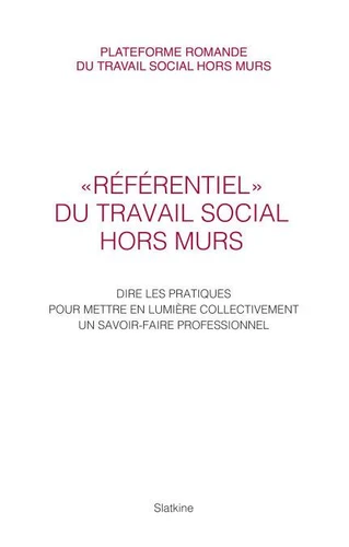 Comment fait-on du travail social hors murs ?La pratique du Travail Social Hors Murs (TSHM) se déploie au sein des collectivités locales au plus près de différents publics en situation de vulnérabilité. Peu connue, elle peut apparaître comme opaque aux yeux d'un observateur non averti. Les praticiens eux-mêmes rencontrent parfois des difficultés à expliciter leur propre action au quotidien. Afin de rendre compte de la finesse de l'exercice de la pratique et de tenter de répondre à la question : comment fait-on du travail social hors murs, les professionnels de la plateforme romande du travail social hors murs ont construit collectivement ce référentiel de pratiques.