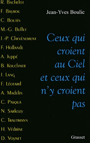 Et Dieu dans tout ça ? Tout ça : c'est-à-dire la politique, les convictions, la gestion du quotidien, l'implication dans les affaires de la cité... Et Dieu : c'est-à-dire la relation, si singulière, qui unit l'homme à une transcendance, et qui définit l'idée qu'on se fait du Bien, du Mal, de la survie de l'âme, du néant... Dans ce livre-entretien, seize professionnels de la politique huit de droite, huit de gauche - racontent ainsi à Jean-Yves Boulic où ils en sont, dans leur engagement, avec Dieu, ou avec l'absence de Dieu... Car, comme dans le célèbre poème d'Aragon, on trouvera dans ce livre " ceux qui croient au Ciel, et ceux qui n'y croient pas... " A partir de leurs itinéraires respectifs, de leurs familles d'origine ou de leurs espérances, ils expliquent ici leur vision du sacré, du profane, du silence, de la foi, du bonheur, de la souffrance, de la mort... Leurs noms ? Roselyne Bachelot, François Bayrou, Christine Boutin, Marie-George Buffet, Jean-Pierre Chevènement, François Hollande, Alain Juppé, Bernard Kouchner, Jack Lang, François Léotard, Alain Madelin, Charles Pasqua, Nicolas Sarkozy, Catherine Trautmann, Hubert Védrine et Dominique Voynet.