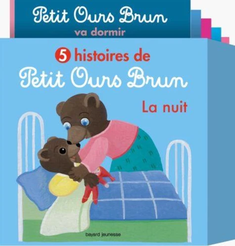 Découvrez le meilleur des histoires de Petit Ours Brun. Une compilation de 5 histoires autour d'une thématique forte : la nuit. Petit Ours Brun va dormir, a peur du noir, fait pipi au lit, a perdu son doudou et veut un câlin.