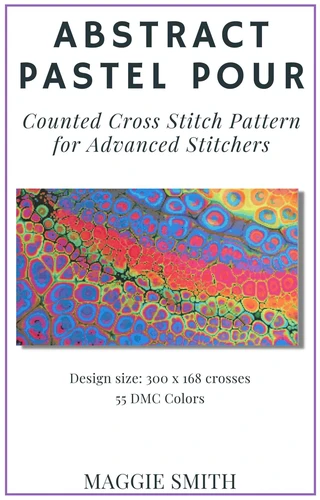 Abstract Pastel Pour | Counted Cross Stitch Pattern for Advanced StitchersLarge and Detailed Design with Easy to Read Full-Color Symbol Chart. This unique pattern invites you to create a mesmerizing piece of art featuring an abstract pastel pour design. Sized at 300 x 168 crosses, the pattern incorporates 55 DMC colors for a soft yet captivating visual impact. Features:: No fractional or back stitches Large, detailed design Clear symbol key Floss list Enlarged pattern Horizontal or vertical display Happy Stitching!