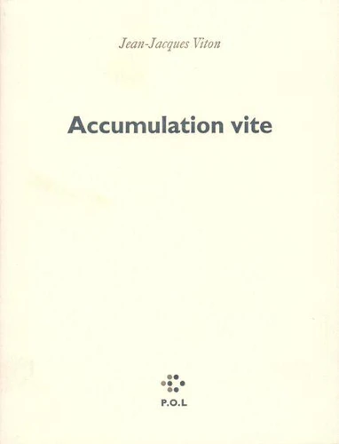 L'accumulation conduit à l'entassement, au stock. Ce livre est un dépôt de visages, de fragments de corps et de situations, de gestes et de bruits. L'accumulateur ramasse et rassemble ces parcelles, ces épisodes, pour les restituer sous forme de courants, de lancées, de passerelles - de poèmes. Cet assemblage va constituer un bloc qui est sans doute de protection. L'accumulation consolide en apparence le corps et ce qu'il contient : du réel et de la fiction ; elle l'alimente pour ce qu'il rejette : des mots, beaucoup de mots qui s'accumulent aussi pour enfouir encore.