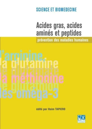 Ce deuxième titre de la collection « Science et biomédecine » décrit le rôle de certains acides aminés dont l'arginine, la glutamine, les acides aminés soufrés et le glutathion. Ces acides aminés et ce peptide à courte chaîne interviennent dans l'inhibition du stress oxydatif et dans la prévention de certaines maladies chroniques, cardiovasculaires et du système nerveux. Cependant, il est démontré qu'une alimentation équilibrée, qui tient compte des acides gras poly-insaturés, peut, dans le cadre d'une prévention active, prévenir ces maladies.