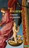 Paul Ricour tend à démontrer ici la proportion, les liens, la tension féconde entre amour et justice qui se fait jour au moment de l' action, que l'un et l'autre revendiquent. Tous deux sont pris dans une économie du don qui déborde de toute part l'éthique dont ils se veulent les figures responsables. Une logique de la surabondance vient toujours mettre au défi une logique de l'équivalence.