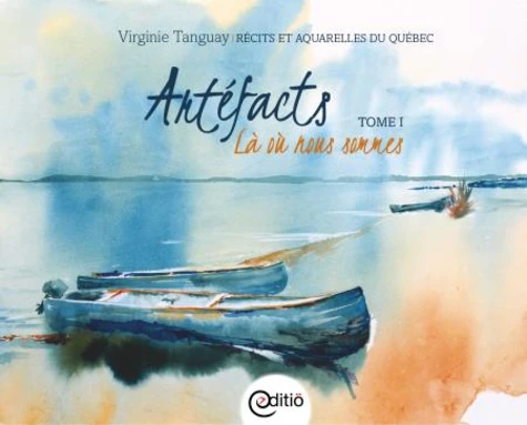 Artéfacts Lieux d'origine contient 33 récits illustrés d'aquarelles de lieux, de moments et de personnages du Québec représentés par Virginie Tanguay, une artiste accomplie qui vit sur les rives du lac Saint-Jean au Québec. L'ensemble de la création émerge de l'eau tels des artéfacts, suggère un passé et invite à regarder au loin. Amoureuse des grands espaces, de tout ce qui est vivant, c'est là que l'auteure puise son inspiration.