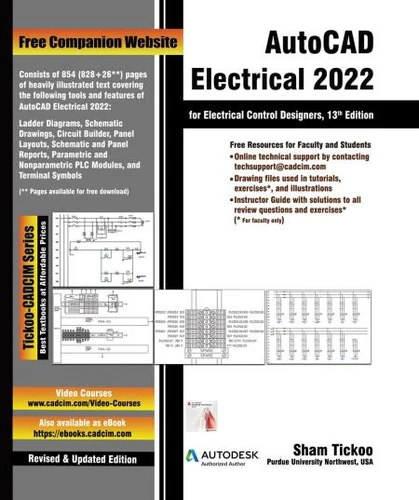 The AutoCAD Electrical 2022 for Electrical Control Designers book has been written to assist the engineering students and the practicing designers who are new to AutoCAD Electrical. Using this book, the readers can learn the application of basic tools required for creating professional electrical control drawings with the help of AutoCAD Electrical. Keeping in view the varied requirements of the users, this book covers a wide range of tools and features such as schematic drawings, Circuit Builder, panel drawings, parametric and nonparametric PLC modules, stand-alone PLC I/O points, ladder diagrams, point-to-point wiring diagrams, report generation, creation of symbols, and so on.