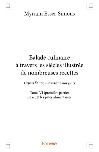 Le Tome VI (première partie) de notre ouvrage Balade culinaire à travers les siècles (allant de l'Antiquité jusqu'à nos jours) est consacré au riz et aux pâtes alimentaires. Le riz, cette céréale dont la culture a débuté en Asie, plusieurs millénaires avant notre ère, occupe aujourd'hui une place importante sur toutes les tables d'Europe. Il intervient dans des préparations tant salées que sucrées.
