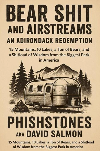 Title:Bear Shit and Airstreams: And Adirondack Redemption Author:PhishStones aka David Salmon:Many Mountains, Many Lakes, a Ton of Bears, and a Shitload of Wisdom from the Biggest Park in AmericaBook.. From the summit of Mount Marcy to the stench of a bear's breakfast outside your tent, Bear Shit and Airstreams is a raw, hilarious, and unfiltered journey into the wild Adirondacks. PhishStones (David Salmon) delivers a funky baby boomer's redemption story told through mountains, rivers, LSD flashbacks, fried bologna, Christian camps, and more bear turds than you can dodge.