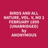 In the pages of "Birds and All Nature, Vol. V, No. 2 February 1899, " nature enthusiasts will embark on an extraordinary journey into the captivating world of birds and the wonders of the natural realm. This meticulously preserved volume, penned by an anonymous author, offers a treasure trove of insights, observations, and captivating tales that will ignite a passion for the avian world and inspire a deeper appreciation for the intricate tapestry of life.