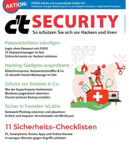 Die Zahl der Cybercrime-Fälle steigt schnell und gleichzeitig werden die Angriffe mit Emotet & Co. auch gegenüber Privatpersonen perfider. Das neue Sonderheft c't Security erklärt, wie Sie Ihre Geräte, Anwendungen und Accounts absichern und worauf Sie im Alltag achten müssen. In unseren Security-Checklisten haben wir die nötigen Schritte übersichtlich und verständlich aufbereitet. In den weiteren Schwerpunkten steigen wir tiefer in das Thema IT-Sicherheit ein.