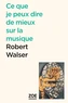 Cette soixantaine de textes, dont la moitié pour la première fois en français, donnent à entendre les réflexions lucides et subtiles de Robert Walser sur l'art musical. Envolées lyriques pour la Flûte enchantée de Mozart ou ironie acérée face aux mondanités des auditeurs et poses affectées des musiciens, le poète s'attache à toutes les mélodies. Mais ce n'est pas une surprise s'il marque sa préférence pour les formes modestes, brèves et les sons du quotidien.