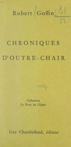 A près de 80 ans, un poète se penche sur le passé (sur le présent aussi). Une pointe de tristesse, mais aussi un amour de vivre, un punch qui met k.o. la poyâtrie intellectuelle. CF. le Pont de l'Épée 49, Robert Goffin.