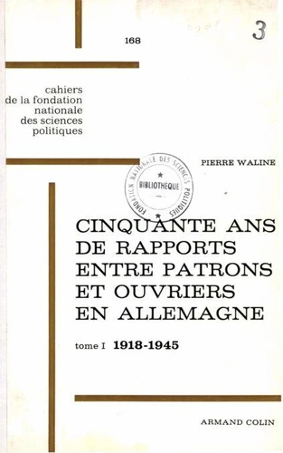 Cinquante ans de rapports entre patrons et ouvriers en Allemagne, 1918 - 1968. Tome 1, de 1918 à 1945 : La République de Weimar et le Troisième Reich