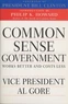The federal government is ailing and needs a cure. The cure lies in embracing a principle long known to the American people but little recognized by Washington-until now: common sense. In this pathbreaking report, Vice President Al Gore, presiding over the National Performance Review, at the request of President Clinton, charts a fundamental shift in how government conducts itself. This report understands that a government that recognizes who its real customers are, works with them to understand their needs, and puts them first, not last, is a government that deserves to govern.
