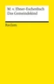 Mit ihren Erzählungen, Aphorismen und vor allem dem Roman »Das Gemeindekind« hat sich die österreichische Dichterin Marie von Ebner-Eschenbach in die Literaturgeschichte eingeschrieben. Wie sich ein Kind verurteilter Eltern, ein in die Außenseiterschaft Gezwungener, in schweren Kämpfen behauptet, sich innerlich aus der Misere herausarbeitet, das ist das soziale Thema dieser Geschichte einer hochadligen Autorin, die die Situation der ländlichen Unterschicht in der zweiten Hälfte des 19.