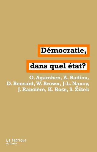 "Qu'est-ce qu'un démocrate, je vous prie ? C'est là un mot vague, banal, sans acception précise, un mot en caoutchouc." Cette question, ce jugement sans appel d'Auguste Blanqui datent d'un siècle et demi mais gardent une actualité dont ce livre est un signe. Il ne faut pas s'attendre à y trouver une définition de la démocratie, ni un mode d'emploi et encore moins un verdict pour ou contre. Les huit philosophes qui ont accepté d'y participer n'ont sur le sujet qu'un seul point commun : ils et elles rejettent l'idée que la démocratie consisterait à glisser de temps à autre une enveloppe dans une boîte de plastique transparent.
