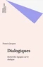 Dans "Dialogiques, recherches logiques sur le dialogue", Francis Jacques compare l'analyse anglo-saxonne des énoncés à l'étude de l'énonciation par les linguistes français. La théorie des jeux, les actes de langage, et la sémantique modale y sont élargis et soudés dans leur consistance relative. L'ouvrage est le fruit de cinq études composées de 1975 à 1978, à la suite d'un travail académique intitulé "Référence et description", thèse de Doctorat d'État soutenue en juin 1975.