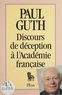 Après tout, la plupart des Français ne croient-ils pas que Paul Guth siège sous la Coupole depuis quinze ans ? Défenseur de notre langue et de notre culture, Paul Guth a l'honneur de figurer parmi les classiques en France et à l'étranger. Avec ce discours, il restera attaché à l'Académie, dans la plus brillante tradition satirique française, en joyeux écho à l'Habit vert, de De Flers et Caillavet, qui triompha au théâtre des Variétés à la Belle Époque.