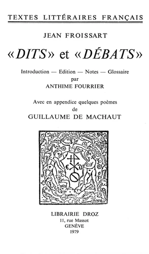 "Dits" et "Débats". Avec en appendice quelques poèmes de Guillaume de Machaut