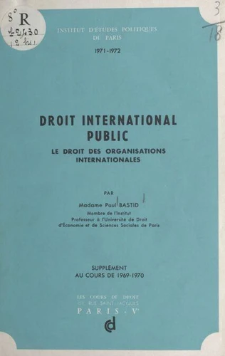 Droit international public, le droit des organisations internationales. Supplément au cours de 1969 - 1970