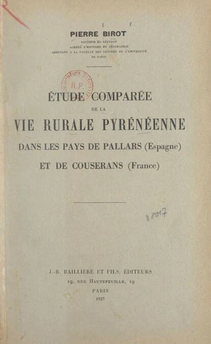 Étude comparée de la vie rurale pyrénéenne dans les pays de Pallars (Espagne) et de Couserans (France)