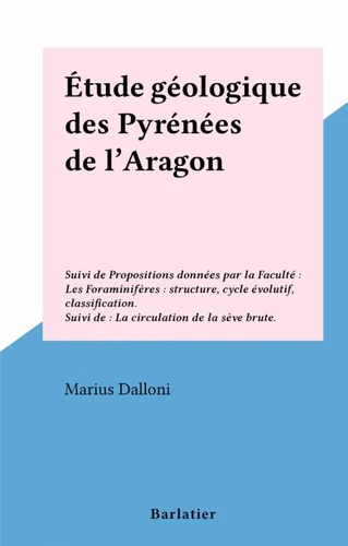 Étude géologique des Pyrénées de l'Aragon. Suivi de Propositions données par la Faculté : Les Foraminifères : structure, cycle évolutif, classification. Suivi de : La circulation de la sève brute.