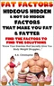 Fat Factors - Hideous Hidden and Not So Hidden Factors that Make You Fatter... Know the Factors. Know the Enemy. Know What You Need to Know to Figure Out How Lose That Weight Learn a broad array of factors that cause unwanted weight gain Discover the Fat Factors that cause "Stuck" body fat Once you can spot the fat causing factors or even the likely fat causing factors, then... you can develop a specific, targeted strategy to resolve those factors in order to obtain the lean and toned body you want.
