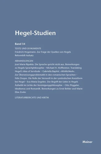 Beiden gelten unser aller gute Wünsche für die neue Aufgabe. Die Redaktion betreut weiterhin Hans-Jürgen Gawoll. Texte und Dokumente Friedrich Hogemann. Zur Frage der Quellen von Hegels Reformbill-Aufsatz Abhandlungen José Maria Ripalda. Die Sprache spricht nicht aus. Bemerkungen zu Hegels Sprachphilosophie - Michael H. Hoffheimer. Translating Hegel's Idea of Servitude - Gabriella Baptist. "Wirklichkeit".