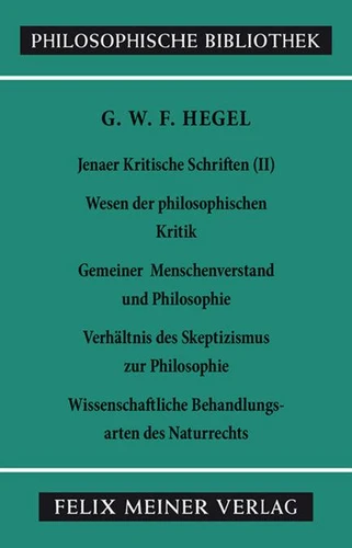 Dieser Band enthält mit Ausnahme von Glauben und Wissen (s. PhB 319c) alle Hegel zugeschriebenen Beiträge aus dem Kritischen Journal der Philosophie, das Schelling und Hegel in den Jahren 1802 und 1803 gemeinschaftlich verfaßten und herausgaben. Der einleitende Beitrag "Über das Wesen der philosophischen Kritik überhaupt, und ihr Verhältnis zum gegenwärtigen Zustande der Philosophie insbesondere" verkündet das gemeinsame Programm, das bereits bei Ankündigung des Kritischen Journals pointiert formuliert ist: "Damit wird endlich reine Bahn gemacht sein, und unter der Hand der Kritik der Grund und Boden der wahren Philosophie sich von selbst bilden können und ruhig emporsteigen."