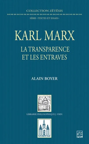 Karl Marx est l'un des plus grands penseurs du XIXe siècle. Son matérialisme a cependant une orientation pratique assumée. Son but est d'effectuer une critique radicale à la fois du système socio-économique capitaliste et de ses théoriciens. La révolution prolétarienne communiste est son objectif essentiel. Le présent essai offre une interprétation nouvelle de sa pensée, axée sur la notion d'entraves et celles de simplicité et de transparence, ainsi que sur la critique de toute séparation.