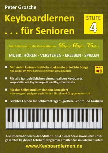 Keyboardlernen für Senioren (Stufe 4). Konzipiert für die Generationen: 55plus - 65plus - 75plus