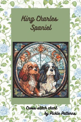These cross stitch charts are a whimsical design of two King Charles Spaniels reminiscent of stained glass. Each image is 200x200 stitches. Each image is split into 12 separate charts with symbols to represent the colours used for the stitches. Both coloured and black and white versions of the charts are included to allow you to choose whichever chart you find easiest to follow personally. DMC floss chart is included.