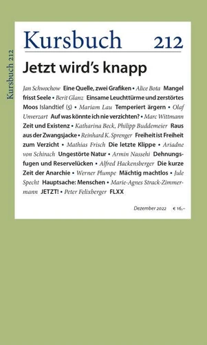 Das Kursbuch beschäftigt sich deshalb mit dem Phänomen der Knappheit. Jetzt, wo es vielerorts knapp wird. Die Lage in diesem Winter macht klar, von wie vielen kontrollierbaren und nicht kontrollierbaren Parametern die Versorgung mit knappen Gu?tern, aber auch knappen Lo?sungskonstellationen abha?ngig ist.