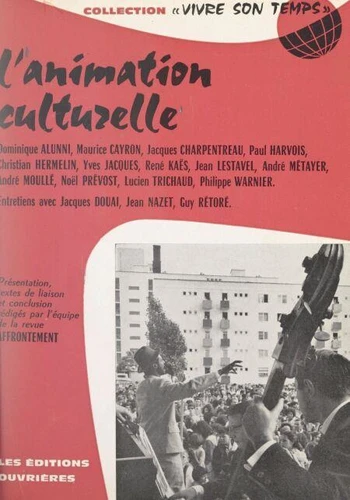 Que ce soit dans un grand ensemble urbain, dans un village, ou à l'échelle d'une région, des hommes agissent pour une animation culturelle. Ces animateurs se trouvent dans des groupes divers : comités d'entreprise, associations culturelles, Maisons des Jeunes, mouvements de jeunesse, Centre dramatique, centre de vacances, etc. Ils répondent à un besoin nouveau et contribuent à enrichir le tissu social, à le créer où il n'existe pas.