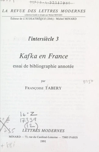 L'intersiècle (3). Kafka en France. Essai de bibliographie annotée
