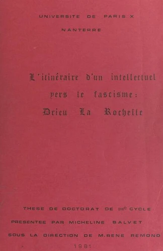 L'itinéraire d'un intellectuel vers le fascisme : Drieu La Rochelle. Thèse de Doctorat de IIIe cycle