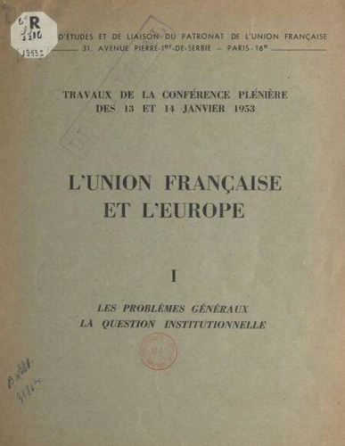 L'Union française et l'Europe (1). Les problèmes généraux. La question institutionnelle. Travaux de la Conférence plénière des 13 et 14 janvier 1953