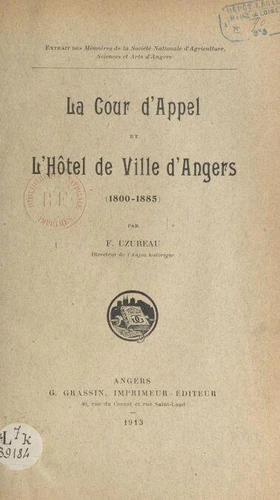 Ce n'est donc que le 22 septembre 1823, que le nouvel Hôtel de Ville fut enfin inauguré par la duchesse d'Angoulême, et que la Cour d'appel quitta enfin le palais de justice pour s'installer dans l'ancien Hôtel de Ville, où elle resta jusqu'en 1885. Voici toute l'histoire, narrée par François Uzureau, Directeur de "L'Anjou historique".