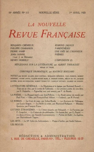 La Nouvelle Revue Française (1908 - 1943) N° 115 avril 1923