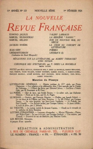 La Nouvelle Revue Française (1908 - 1943) N° 125 février 1924
