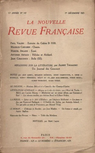 La Nouvelle Revue Française (1908 - 1943) N° 147 décembre 1925