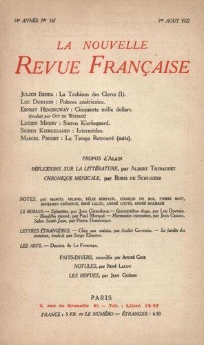 La Nouvelle Revue Française (1908 - 1943) N° 167 août 1927