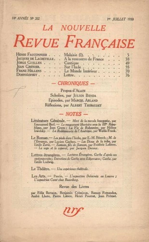 La Nouvelle Revue Française (1908 - 1943) N° 202 juillet 1930