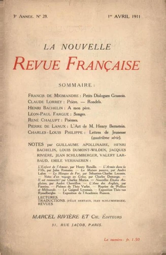 La Nouvelle Revue Française (1908-1943) N° 28 avril 1911
