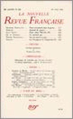 R. F.) Kléber Haedens, De l'Abjection, Anonyme (Éditions de la N. R. F.) Notes : littérature : Denis de Rougemont, Hommage r C. F. Ramuz (Porchet) Notes : les essais : Bernard Groethuysen, Le mythe et le livre, par René M. Guastalla (Éditions de la N. R. F.) Boris de Schlzer, Athcnes et Jérusalem, par Léon Chestov (Vrin) Notes : lettres étrangcres : Roger Caillois, La fin et les moyens, par Aldous Huxley (Plon) Claude-Alix Carbanne, Le sel de la terre, par Jozef Wittlin (Albin Michel) Quelques revues de poésie : Jean Wahl, Les Cahiers du Sud, Fontaine, Marsyas - P.