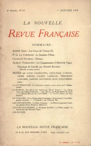 La Nouvelle Revue Française (1908 - 1943) N° 61 janvier 1914