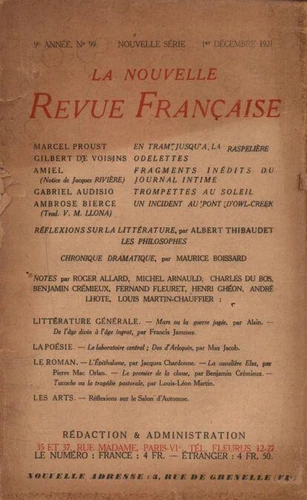 La Nouvelle Revue Française (1908 - 1943) N° 99 décembre 1921